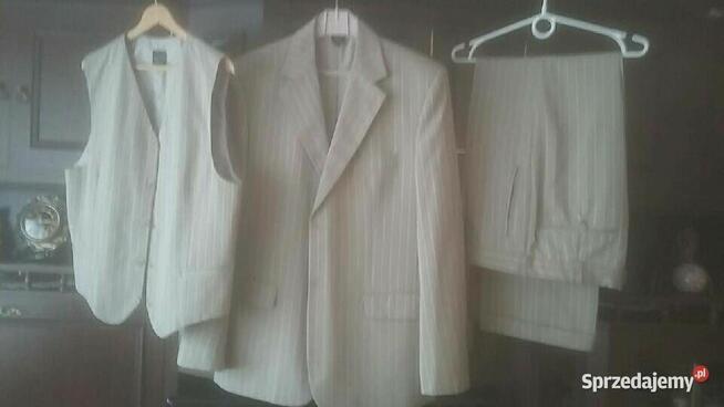 Małouzywany garnitur ,kolor ciemny beż rozmiar wzrost170/pas98; z kamizelka