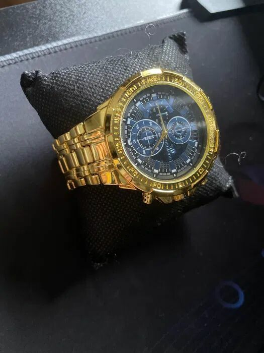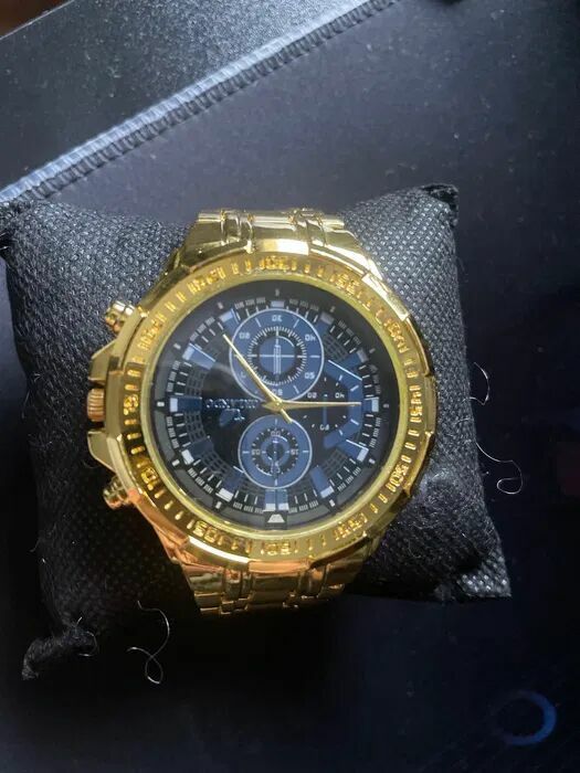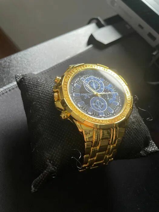 Zegarek wykonany ze stali nierdzewnej, z eleganckim złotym wykończeniem. Posiada metalową bransoletę. Stan: nowyKlasyczny, a jednocześnie nowoczesny design sprawia, że świetnie sprawdzi się zarówno na co dzień, jak i do eleganckich stylizacji.